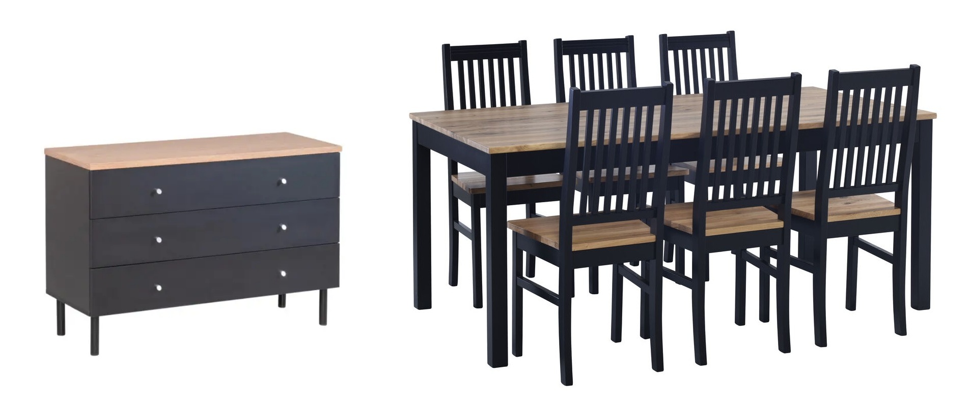 Ruokailupöydät ja tuolit sekä lipastot ja senkit