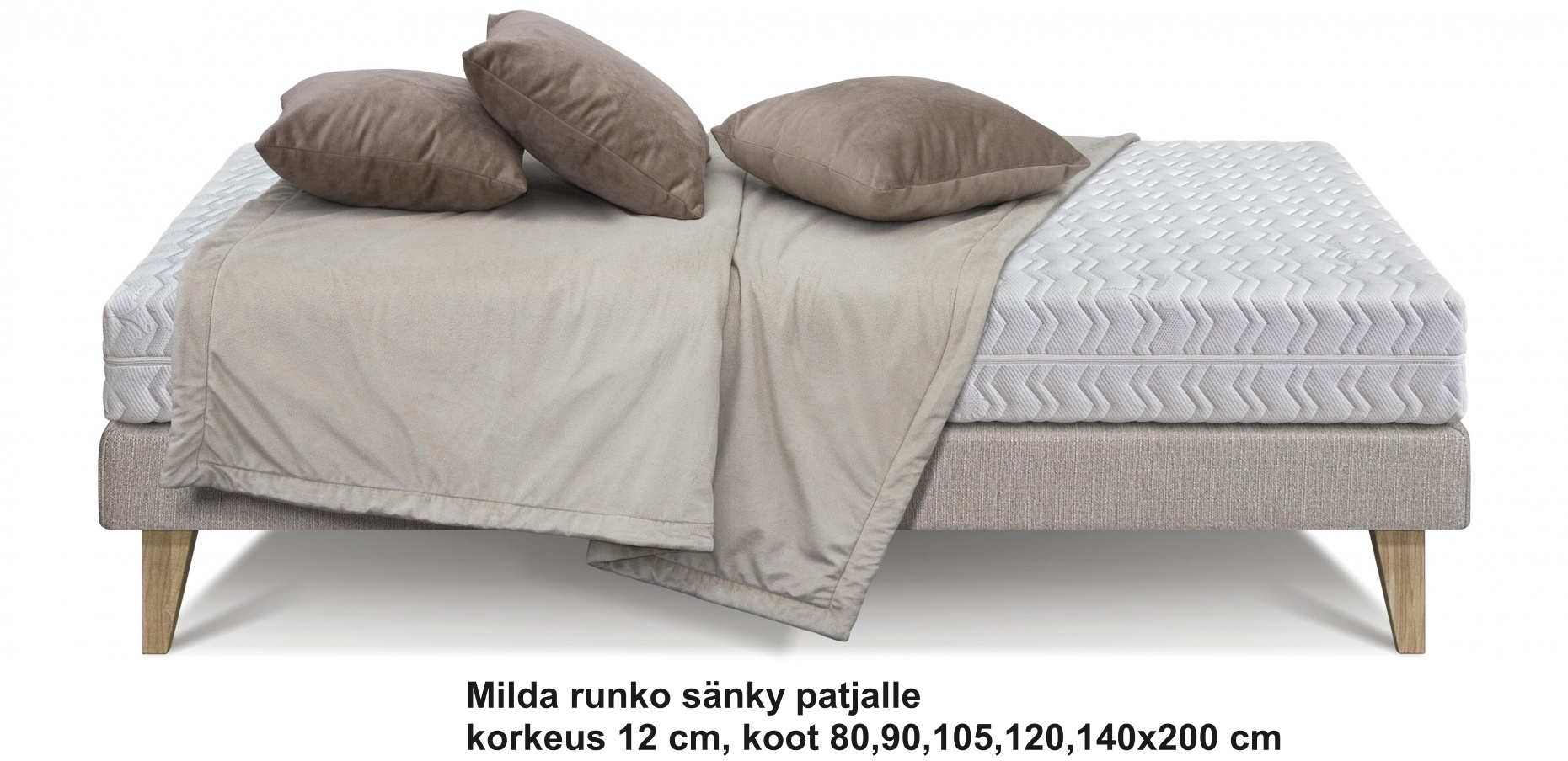 Suosittelemme lisäksi sijauspatjansuojaa, joka suojaa patjaa lialta ja pidentää sen käyttöikää – saatavilla lisätarvikkeista. Roma-Latex -sijauspatjan päällinen on tikattu, irrotettava ja vesipestävä 60 °C:ssa.Viimeistele kokonaisuus Uniluoto-peitolla ja tyynysetillä – ylellistä mukavuutta jokaiseen yöhön. Mahdollista tilata kuvan runko joustinpatjalle lisätarvikkeista