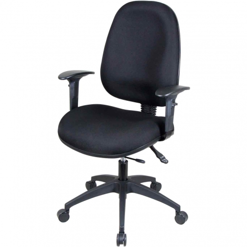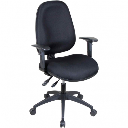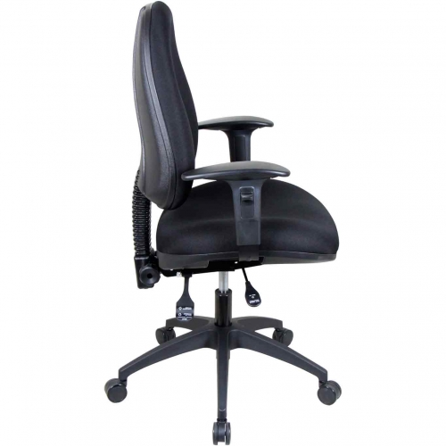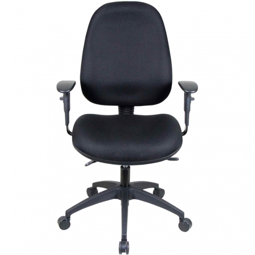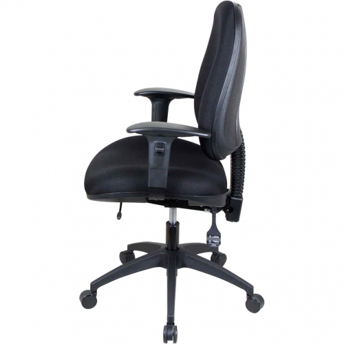 Pehmustettu vaneri-istuin ja Teflon-suojattu, savuketestattu 100 % polyesteriverhoilu tarjoavat miellyttävän istuttavuuden ja erinomaisen kulutuskestävyyden (100 000 Martindale). Käsinojat ovat säädettävissä sekä korkeuden että sivusuunnan osalta, ja pehmeät pyörät soveltuvat koville lattioille.