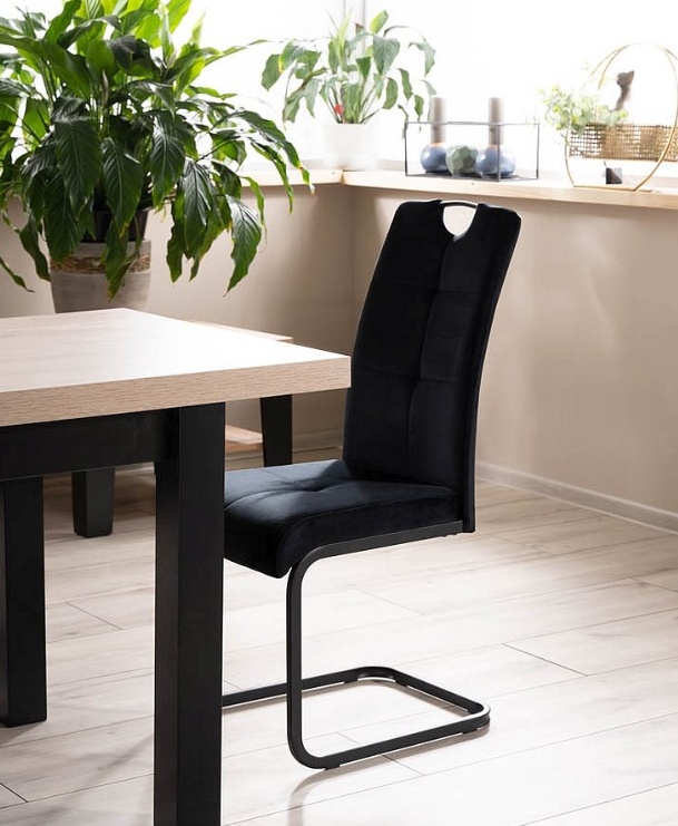 Axo-ruokapöydän tuoli yhdistää modernin muotoilun ja mukavan istuinratkaisun, tehden siitä täydellisen valinnan tyylikkääseen kotiin. Sen mattamustat metallijalat tuovat tilaan ajattoman ja selkeän ilmeen.