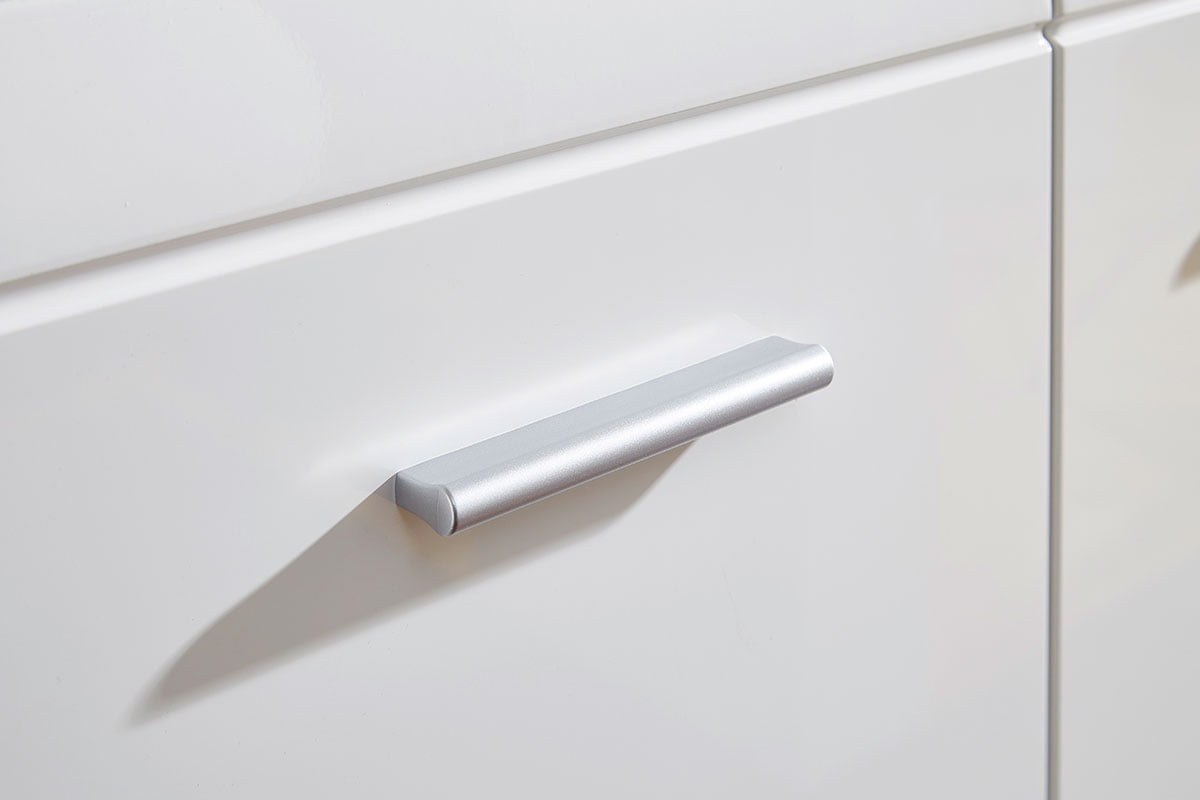 Laminoidusta kalustelevystä valmistettu runko ja lämpömuovattu MDF-etulevy takaavat pitkäikäisen ja helppohoitoisen rakenteen. Alumiininharmaat muovivetimet täydentävät modernin ilmeen, ja kaappi on saatavilla joko osina tai valmiiksi koottuna lisähinnasta.