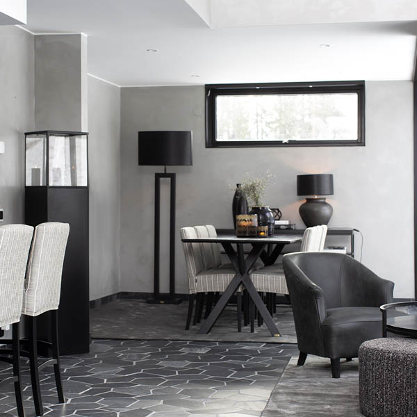 Arezzo lattiavalaisin yhdistää tyylikkään metallirungon ja mustan, Ebonyn sävyisen nahkavarjostimen, jotka tuovat sisustukseen ylellistä ja samalla ajatonta ilmettä. Valaisin sopii saumattomasti niin moderniin kuin klassisempaan kotiin, ja sen minimalistinen muotokieli korostaa skandinaavista tunnelmaa.