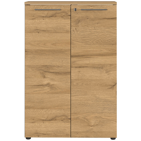 Värivaihtoehdot tammi/grafiitti ja vaaleanharmaa tuovat työtilaan raikkaan ja elegantin ilmeen. Selkeälinjainen design sulautuu moniin sisustustyyleihin ja tekee kaapista sekä näyttävän että käytännöllisen osan kokonaisuutta.