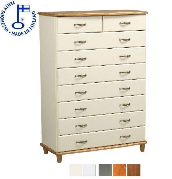 - Korkealaatuinen kotimainen Aina tuotesarjan laatikosto 9 laatikolla jossa metalliset liukukiskot. Aino tuotesarjaa on saatavana useana väriyhdistelmänä ja kahdella eri vedinvärillä. Tuote toimitetaan osina.