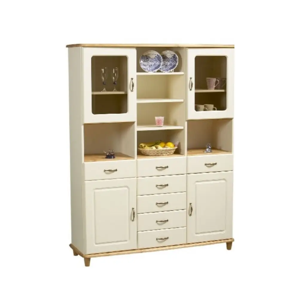 Kaapissa on kaksi lasiovellista yläkaappia, seitsemän vetolaatikkoa metallisilla liukukiskoilla sekä seitsemän irtohyllyä, jotka tarjoavat runsaasti tilaa astioille, koriste-esineille ja muille kodin tavaroille. Jokainen yksityiskohta on suunniteltu tukemaan käytännöllisyyttä ja arjen sujuvuutta.