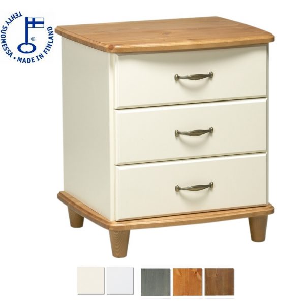 - Korkealaatuinen kotimainen Aina tuotesarjan laatikosto kolmella laatikolla, jossa metalliset liukukiskot. Aino tuotesarjaa on saatavana useana väriyhdistelmänä ja kahdella eri vedinvärillä. Tuote toimitetaan osina.