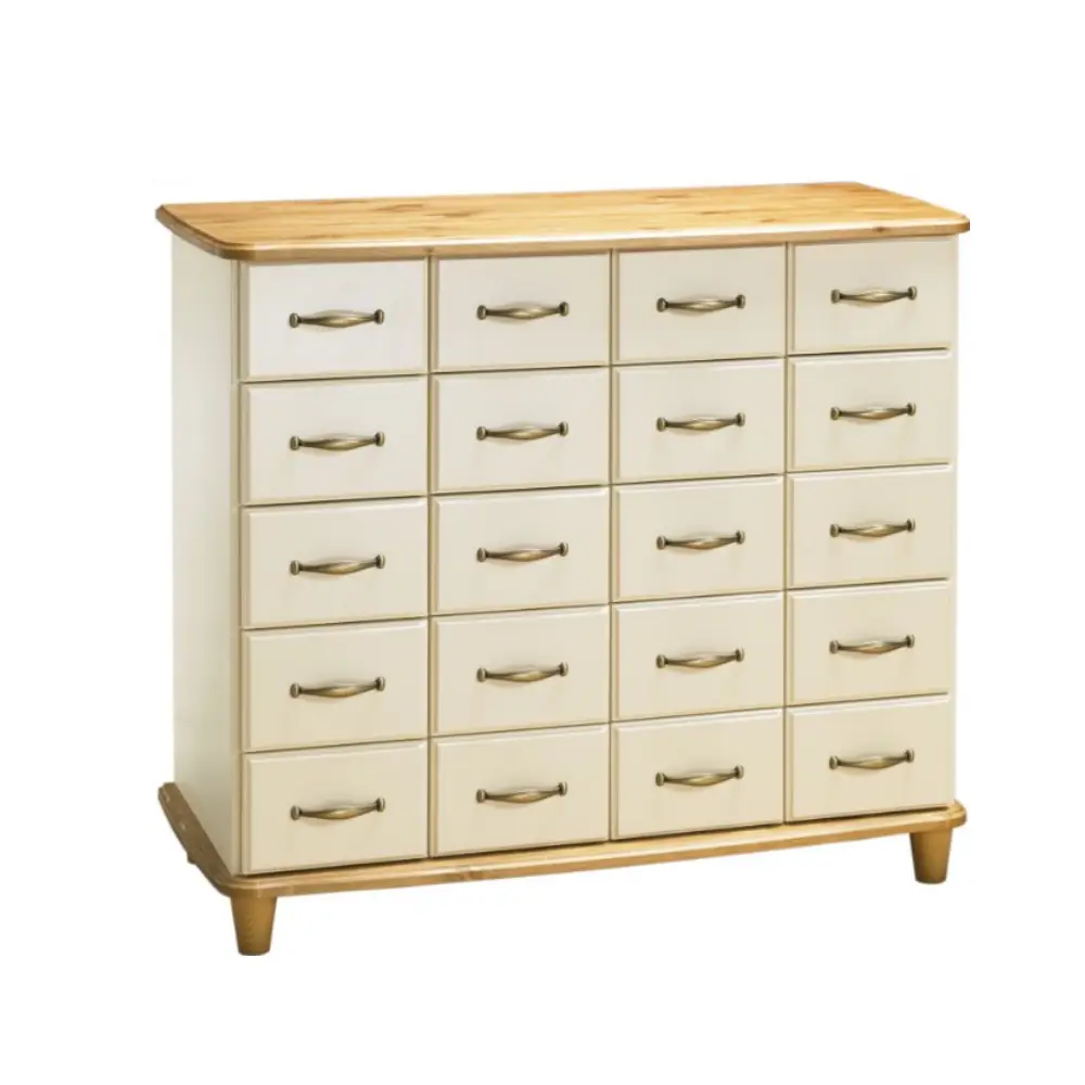 Valitse mieleisesi väriyhdistelmä useista kauniista vaihtoehdoista: runko valkoisena tai vaniljana, kansi ja pohja antiikki-, pähkinä- tai harmaasävyisenä. Tyylin viimeistelevät vetimet, jotka ovat saatavilla joko antiikkimessingin tai mattakromin sävyssä – täydellinen yksityiskohta, joka tuo lipastoon viimeistellyn ilmeen.