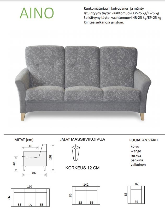 | 87 cm | 86 cm | 102 cm | cm | cm | cm | cm | 48 cm | cm | 49 cm | 12 cm | cm | cm | cm | cm | cm | cm | cm | Istuimen jousitus (nosag) 4 mm, istuintyyny vaahtomuovi 30EP, Kiinteä istuintyyny | Kiinteä selkätyyny, Vaahtomuovi HR25, Vaahtomuovi HR25EP | cm | cm | cm | cm | cm | cm | cm | cm | cm | cm | Massiivipuu, Vaneri | cm | kg | cm | cm | cm |