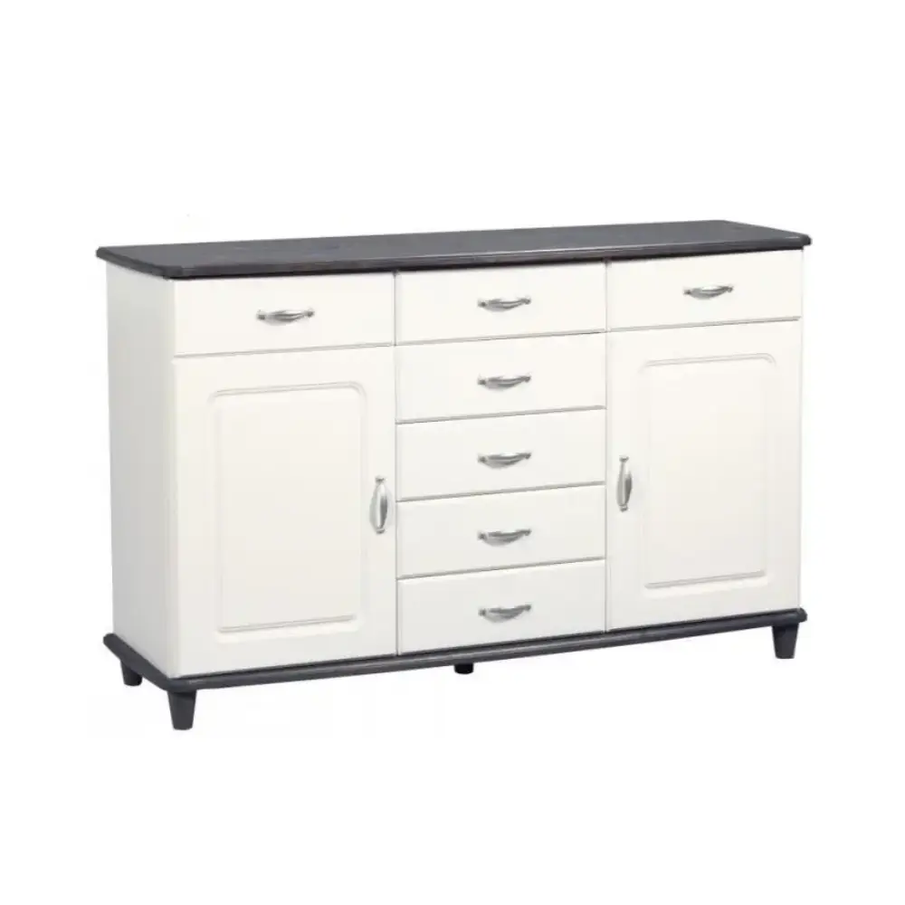 Voit räätälöidä senkin ulkonäön omaan sisustukseesi sopivaksi useista väriyhdistelmistä ja kahdesta vetimen väristä – klassinen antiikkimessinki tai moderni mattakromi. Senkki on valmistettu 19 mm:n maalatusta MDF-levystä ja 20 mm:n petsatusta massiivimännystä, jotka yhdessä luovat tukevan, kestävän ja elegantin kokonaisuuden.