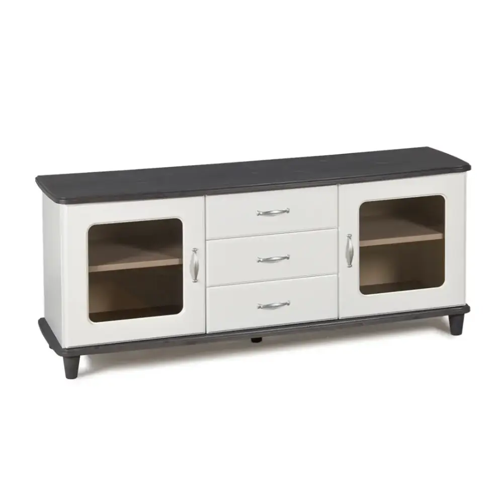 Valmistettu 19 mm:n maalatusta MDF:stä ja tukevilla massiivipuujaloilla varustettuna, tv-taso on rakennettu kestämään käyttöä vuodesta toiseen. Valitse useista väriyhdistelmistä ja kahdesta vetimen väristä – antiikkimessinki tai mattakromi – ja viimeistele ulkonäkö sisustukseesi sopivaksi. Tämä tekee tv-tasosta monipuolisen kalusteen, joka istuu täydellisesti erilaisiin tyyleihin modernista klassiseen.
