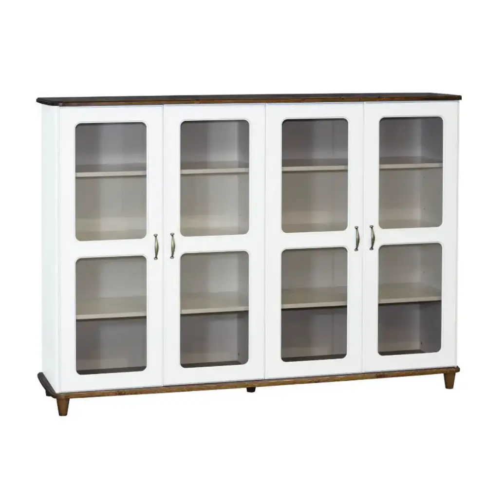 Aino Vitriini 183400 yhdistää käytännöllisyyden ja tyylin tarjoten neljä ovea, joissa kussakin on kolme hyllyä. Tämä rakenne tarjoaa runsaasti säilytystilaa ja mahdollisuuden esillepanoon – täydellinen paikka astioille, koriste-esineille tai kirjoille. Vitriini tuo kotiin järjestystä ja eleganttia ilmettä, joka kestää aikaa ja katseita.