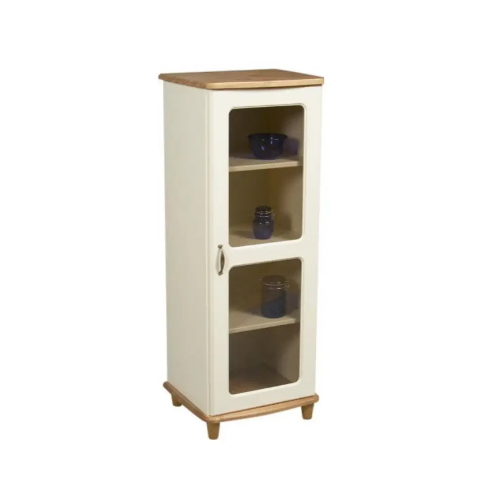Aino Vitriini 51100 yhdistää klassisen muotoilun ja modernin käytännöllisyyden, tuoden kotiin eleganttia tyyliä ja harmonista ilmettä. Sen ajaton ulkonäkö ja laadukas viimeistely tekevät siitä vitriinin, joka täydentää niin perinteisen kuin nykyaikaisenkin sisustuksen. Saatavilla useissa väriyhdistelmissä ja kahdella eri vedinvärillä – antiikkimessinki tai mattakromi – voit luoda juuri omaan kotiisi sopivan kokonaisuuden.