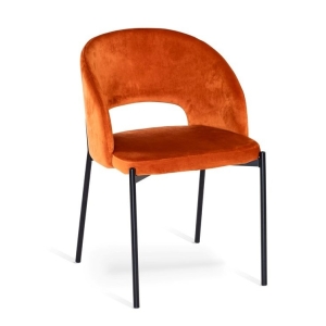 Ryhmään sisältyy 6 kpl Gap-tuoleja, joissa mustat metallijalat ja huolella valitut verhoilut tuovat persoonallista ilmettä. Harmaa kangasverhoilu tarjoaa hillittyä eleganssia, kun taas musta ja oranssi samettiverhoilu lisää tilaan näyttävää kontrastia ja pehmeyttä. Ergonominen mitoitus takaa miellyttävän istumamukavuuden myös pidemmissä ruokailuhetkissä.