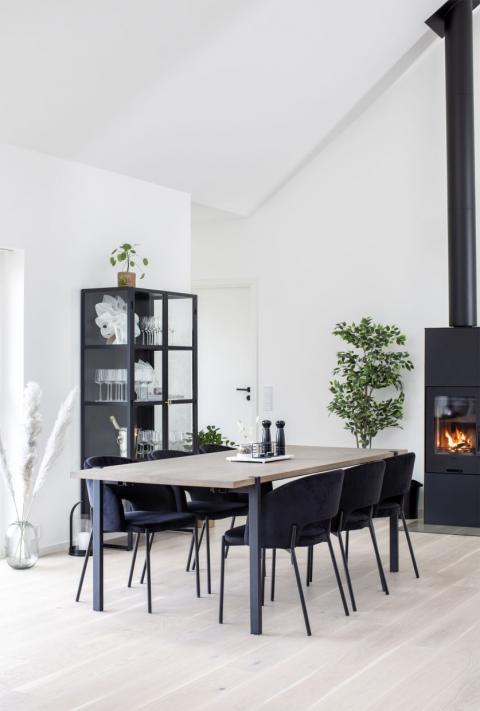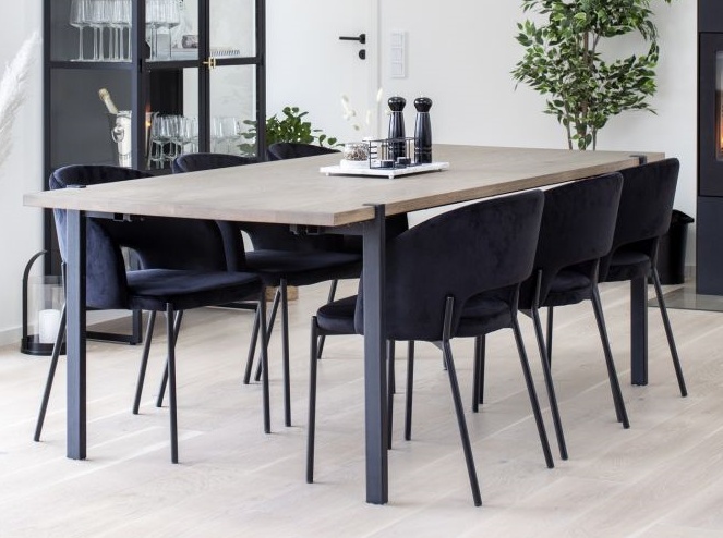 Upea moderni Aki ruokailuryhmä Gap-tuoleilla yhdistää ajattoman harmaapetsatun tammipöydän ja rohkean tyylikkäät Gap-tuolit harmoniseksi kokonaisuudeksi. Mustat metallijalat tuovat ryhmään ryhdikästä ilmettä, joka sopii erinomaisesti moderniin, skandinaaviseen tai teollishenkiseen sisustukseen.