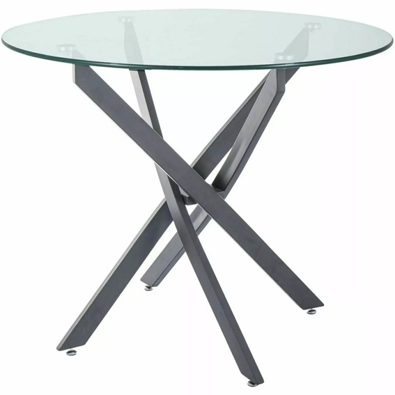 Karkaistu lasikansi tarjoaa helppohoitoisen ja pitkäikäisen pinnan, joka säilyttää upean ulkonäkönsä vuosien ajan. Musta metallijalka tuo ryhtiä kokonaisuuteen ja varmistaa pöydän tukevuuden, tehden siitä erinomaisen valinnan arjen käyttöön.