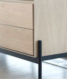 Ale-sarjan valkoöljytty TV-taso on tyylikäs valinta moderniin ja skandinaaviseen olohuoneeseen. Valkoöljytty tammipinta tuo tilaan luonnollista lämpöä, kun taas mustat metallijalat luovat ryhdikkään ja ajankohtaisen ilmeen, joka kestää aikaa ja trendejä.