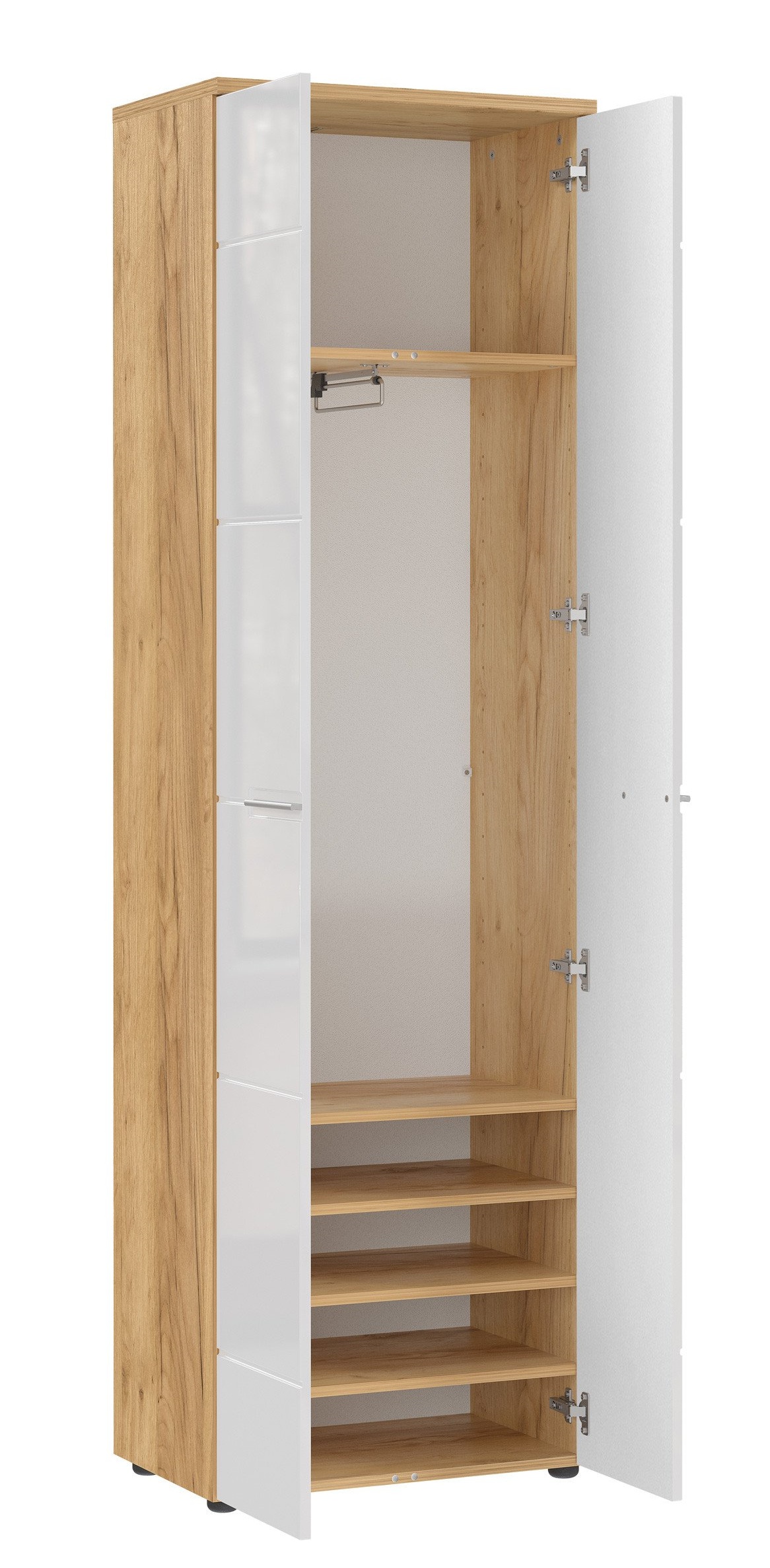 | 60 cm | 41 cm | 198 cm | cm | cm | cm | cm | cm | cm | cm | cm | cm | cm | cm | cm | cm | cm | cm | cm | cm | cm | cm | cm | cm | cm | cm | cm | cm | ABS reunat, Kalustelevy, Korkeakiiltoinen, Mdf, Melamiinihartsipinoite, Ulosvedettävä vaatetanko, Vedin metallia | Tammi, Valkoinen | cm | Korkeussäädettävät hyllyt, Laatikoissa itsestään sulkeutuva mekanismi, Ovissa hidastinmekanismi | Saatavana kasattuna - kasaus tilataan kassalla, Tilaustuote | Toimitus osina | 52 kg | Saksa | cm | cm | cm |