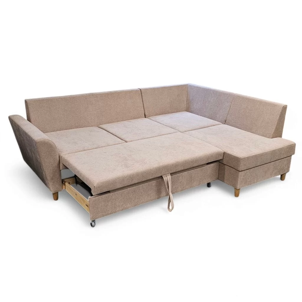 Aleksi-avokulmasohva on täydellinen yhdistelmä tyylikkyyttä, toimivuutta ja rentoa mukavuutta. Sen avara muotoilu ja selkeälinjainen Storm 06 -kangasverhoilu tuovat olohuoneeseen modernia eleganssia, joka kestää aikaa. Korkeat 10 cm puujalat tekevät siivoamisesta helppoa ja antavat sohvalle kevyen, ilmavan ilmeen.