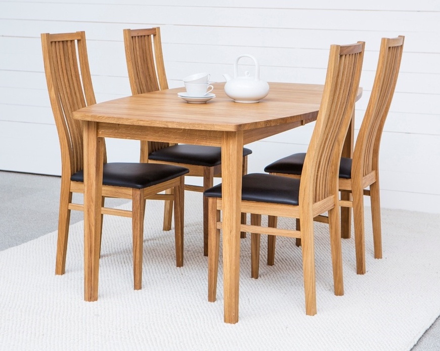 Ryhmään sisältyy neljä Allegro-tuolia, joissa öljytty massiivitammi yhdistyy mustaan keinonahkaverhoiluun. Keinonahka on helppo pitää puhtaana ja miellyttävä istua, ja ergonominen mitoitus varmistaa hyvän istuinmukavuuden myös pidemmillä ruokailuhetkillä. Ruokailuryhmä toimitetaan osissa, mikä helpottaa kuljetusta ja käyttöönottoa.