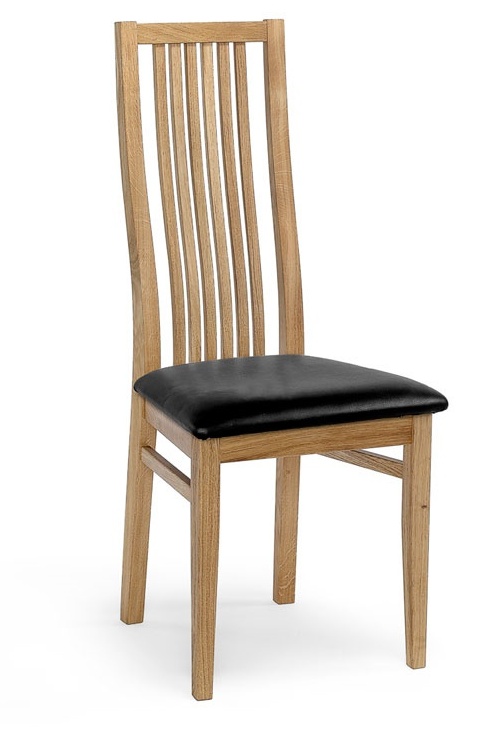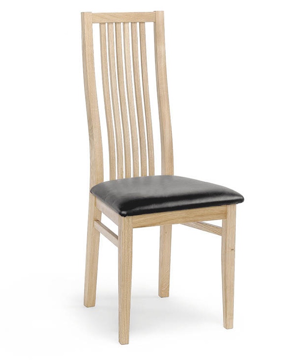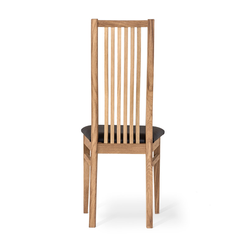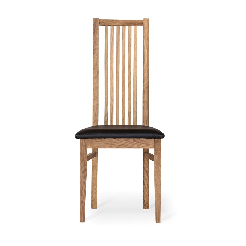 Massiivitammesta valmistettu runko tekee tuolista kestävän ja tukevan jokapäiväiseen käyttöön. Valittavana on pehmeä kangasverhoilu tai helppohoitoinen musta nahkaverhoilu, jotka lisäävät istuinmukavuutta ja viimeistelevät tuolin ilmeen.