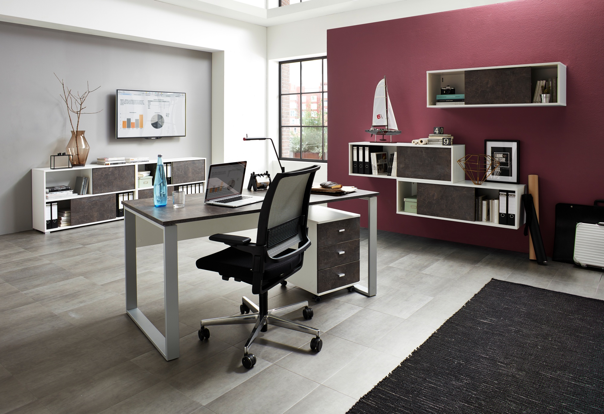 Altino kirjoituspöytä 4150 yhdistää modernin designin ja laadukkaat materiaalit, tuoden työhuoneeseen selkeyttä ja näyttävää ilmettä. Valkoisen ja basalttivärin harmoninen kontrasti luo tyylikkään kokonaisuuden, joka sopii täydellisesti nykyaikaiseen sisustukseen.