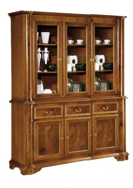 Valmistettu massiivipuusta ja MDF-levystä, vitriini on viimeistelty aidolla juurikuviopuulla ja kiiltävällä lakkauksella, joka korostaa sen ylellistä ilmettä. Saatavilla viidessä upeassa värissä – pähkinä, valkoinen, antiikinvalkoinen, kirsikka ja mahonki – sekä hopea- tai messinkivetimillä, mikä mahdollistaa täydellisen sopivuuden erilaisiin sisustustyyleihin.