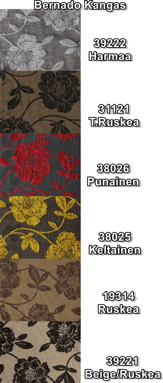 - Laadukas Amanda nojatuoli niskatyynyllä. Tuolin istuintyyny ja selkänojatyyny ovat kiinteät. Tuoli on verhoiltu laadukkaalla ja kestävällä kuviollisella Bernando kankaalla. Tuolia on saatavana myös muilla kankailla kysy silloin asiakaspalvelusta lisätietoa. Samaan sarjaan on saatanava myös rahi sivun alareunasta lisätarvikkeista valitse vain rahin verhoilukangas jolloin rahi toimitetaan samalla värillä kuin tuolikin. Toimitus koottuna vain jalat pitää kiinniittää paikoilleen.