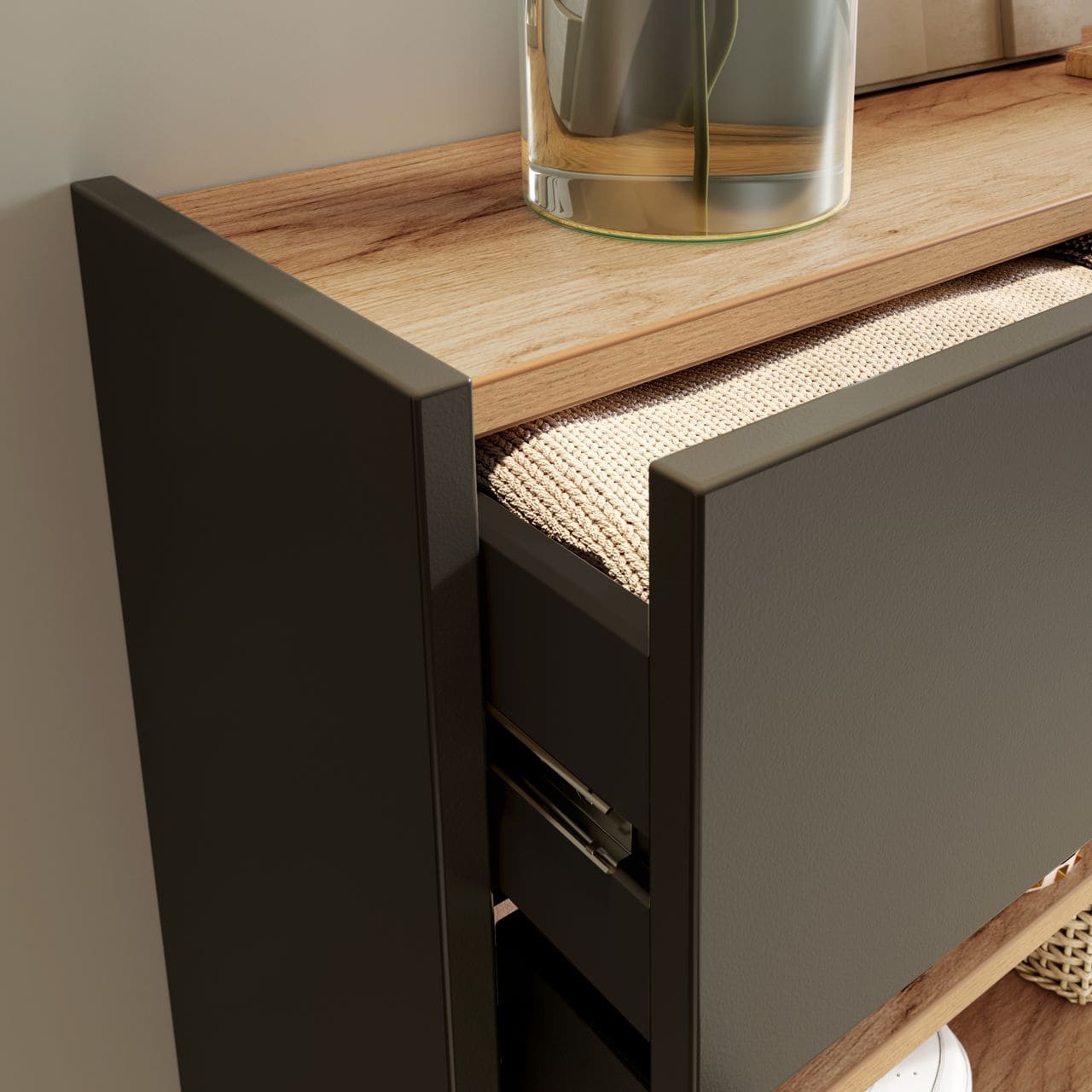 | 57 cm | 22 cm | 110 cm | cm | cm | cm | cm | cm | cm | cm | cm | cm | cm | cm | cm | cm | cm | cm | cm | cm | cm | cm | cm | cm | cm | cm | cm | cm | ABS reunat, Kalustelevy, Melamiinihartsipinoite, Seinäkiinnitys, Vedin metallia | Grafiitti, Tammi, Vihreä | cm | Korkeussäädettävät hyllyt, Ovissa hidastinmekanismi | Saatavana kasattuna - kasaus tilataan kassalla, Tilaustuote | Toimitus osina | 24.71 kg | Saksa | cm | cm | cm |
