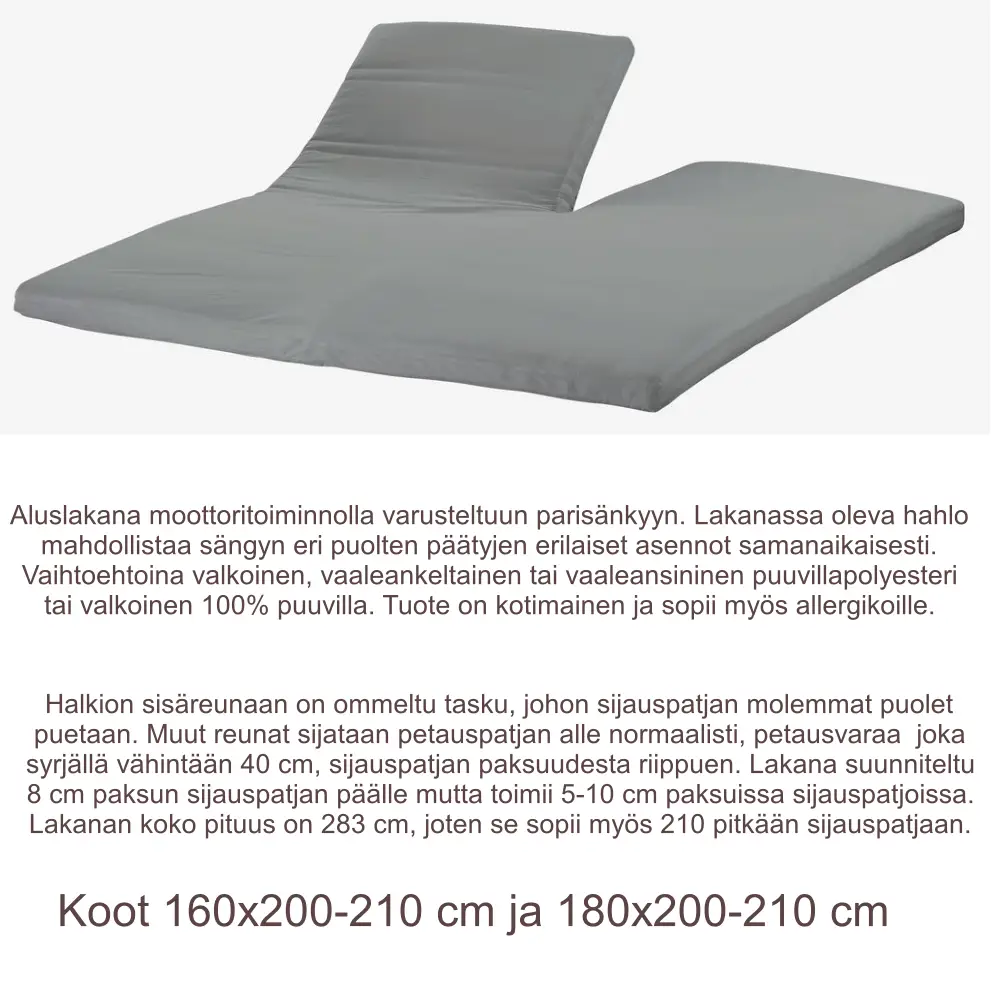 Nauti ylellisestä ja luonnollisesta unesta Anatomic-sijauspatjalla moottorisänkyyn, joka on suunniteltu tukemaan kehoa pehmeästi ja ergonomisesti. Yhtenäinen rakenne halkiolla yläpäässä mahdollistaa moottorisängyn erillisen käytön ilman mukavuudesta tinkimistä – jokainen voi säätää asentonsa juuri itselleen sopivaksi. Tuotetta saatavana niin 160,180 kuin 210 leveisiin moottorisänkyihin joka 200 tai 210 pitkänä.