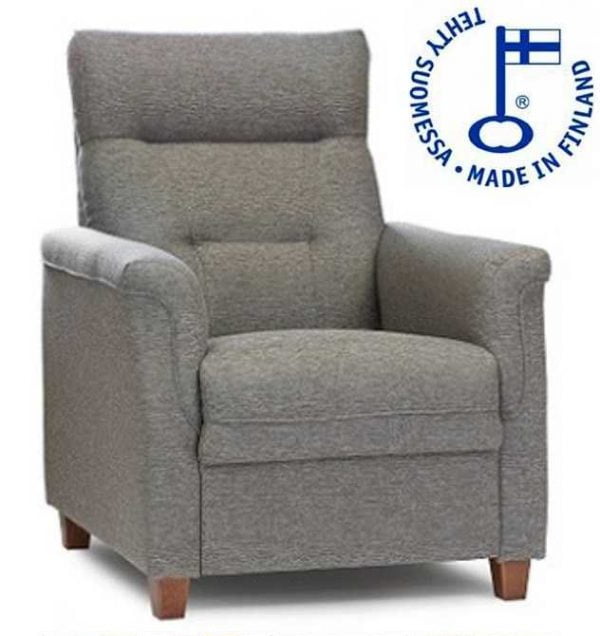 - Laadukas Kotimainen pienen tilan napakka korkeaselkäinen nojatuoli jossa kaunis ja yksinkertainen muotoilu. Tikkaukset selkänojassa ja sen korkeus on 101 cm saa myös niska tukea. Tuote on verholtu laadukkaaalla Board kankaalla, saatavana myös muilla kankailla ota tällöin yhteyttä asiakaspalveluun. Lisätarvikkeista tilattavissa kovempaa istuinta, koristetyynyä tai saman sarjan muita tuotteita. Toimitus koottuna.