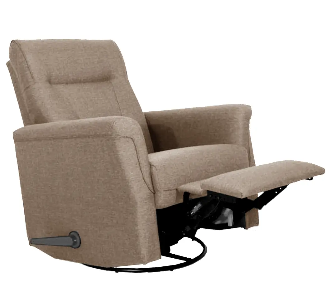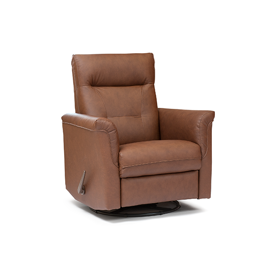 Tämä korkeaselkäinen Anne recliner on täydellinen pienen tilan ratkaisu, jossa yhdistyvät kaunis, yksinkertainen muotoilu ja napakka istuinmukavuus. Selkänoja kallistuu portaattomasti taaksepäin, jalkatuki nousee esiin yhdellä kädenliikkeellä ja tuoli pyörii sekä keinuu, tarjoten täydellisen rentoutumishetken. Korkea selkänoja ja harkitut tikkaukset antavat erinomaisen niska- ja selkätuen.