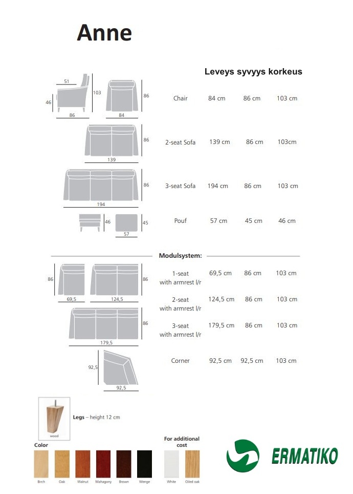 | cm | cm | 103 cm | cm | cm | cm | cm | Leveys 84, syvyys 86 cm | Leveys 139, syvyys 86 cm | Leveys 194, syvyys 86 cm | 46 cm | cm | 51 cm | 12 cm | cm | cm | cm | cm | cm | cm | cm | Jämäkkä selkänojatyyny, Vaahtomuovi HR25EP | cm | cm | cm | cm | cm | cm | cm | cm | cm | cm | Aracon kangas, Hygge kangas, Monolith kangas, Orinoco kangas | Jalat massiivipuuta, Massiivipuu, Vaneri | Ermatiko värit | cm | Täystakuu tuotteelle 2 vuotta | Tilaustuote | Toimitus koottuna - jalkojen kiinnitys | kg | Viro | cm | cm | cm |