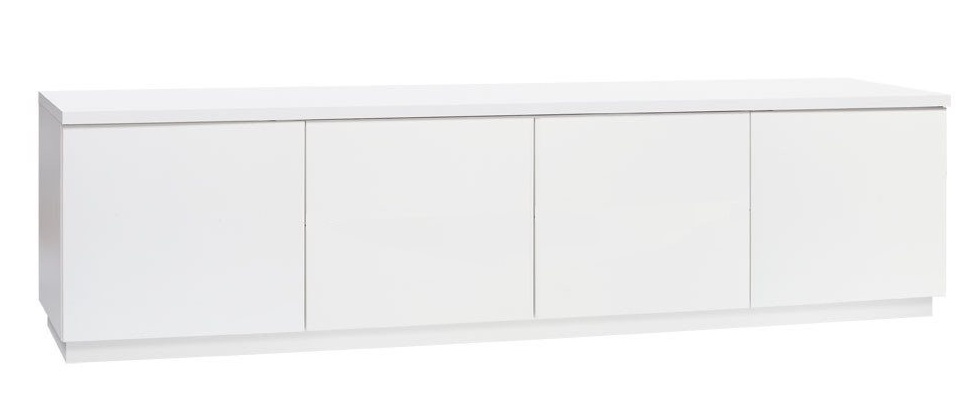 Tv-tasossa on neljä kaappia, joissa jokaisessa on korkeussäädettävä hylly, tarjoten runsaasti säilytystilaa viihdelaitteille ja kodin tarvikkeille. Helppokäyttöiset push-open -mekanismit viimeistelevät modernin käyttökokemuksen.