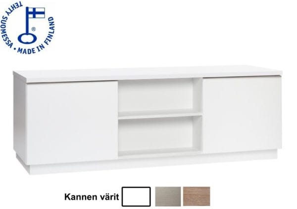 - Upea kotimainen Moderni ja laadukas Anton sarjan Tv-taso kahdella kaapilla joissa molemmissa yksi korkeussäädettävä hylly ja keskellä 2 avohyllyä. Anton on valmistettu vahvasta VTT.n hyväksymästä E1-luokan MFC-kalustelevystä. Laadukas melamiinipinnoite on erittäin valonkestävä, joten kaluste pitää hyvin värinsä. Laatikoissa ja ovissa laadukkaat push-open mekanismit. Tuote toimitetaan valmiiksi kasattuna, sokkeli irrallaan, helppo ruuvata paikalleen.