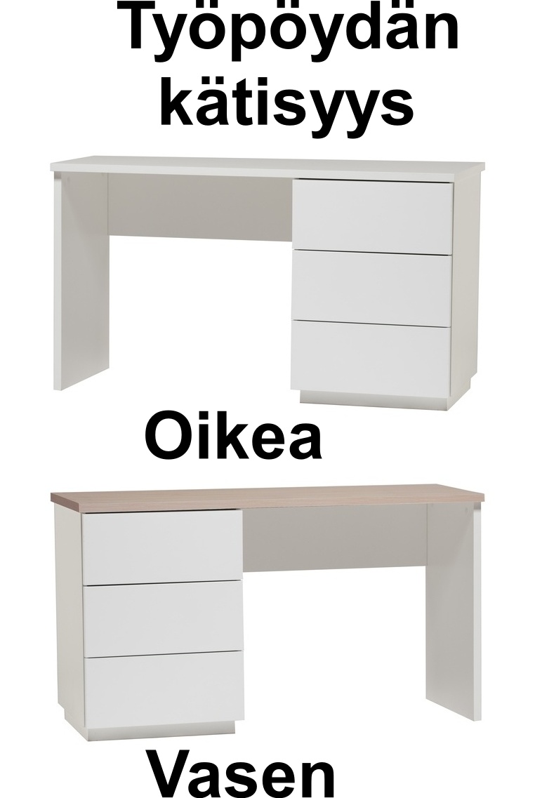 Työpöydässä on ovi, jonka takana korkeussäädettävä hylly tarjoaa joustavuutta säilytykseen. Lisäksi voit valita kätisyyden tilauksen yhteydessä, jolloin pöytä mukautuu täydellisesti huoneesi ja työskentelytapasi mukaan.