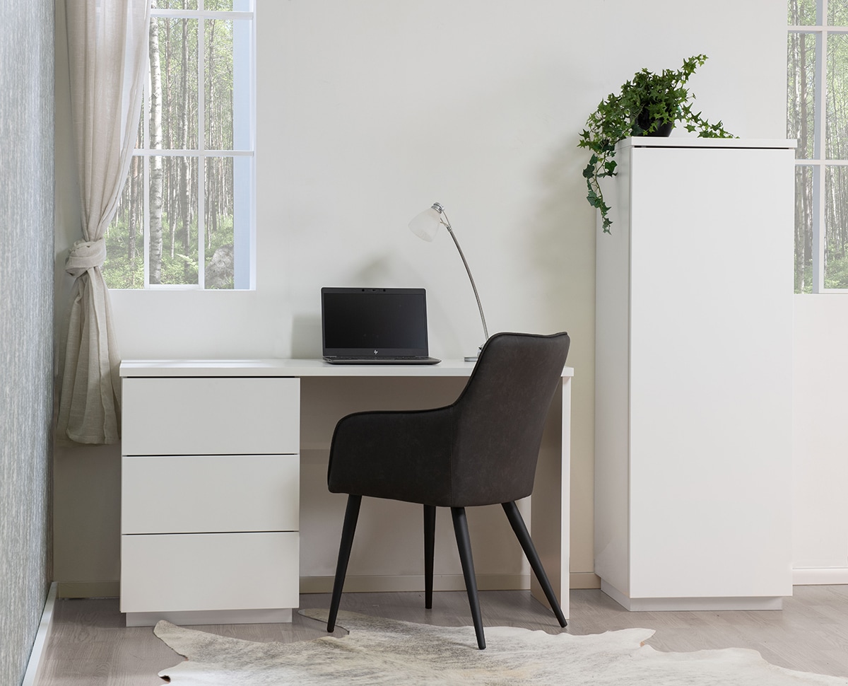 Anton työpöytä yhdistää modernin skandinaavisen muotoilun ja käytännöllisen rakenteen. Työpöydän valkoinen runko ja kolme upeaa kansivärivaihtoehtoa – valkoinen, hopea jalava, kaura tai tammi – tekevät siitä helposti sisustukseen sopivan ja visuaalisesti raikkaan valinnan niin kotiin kuin työhuoneeseen.