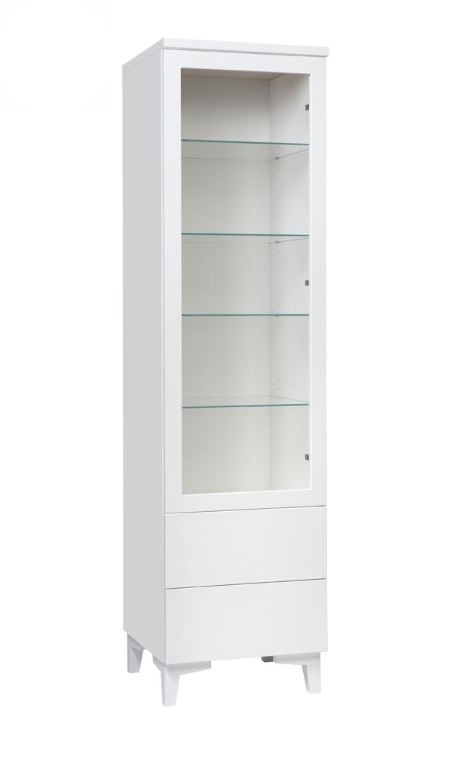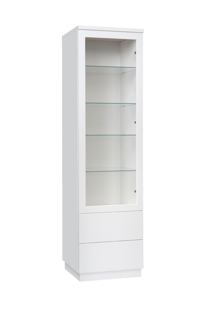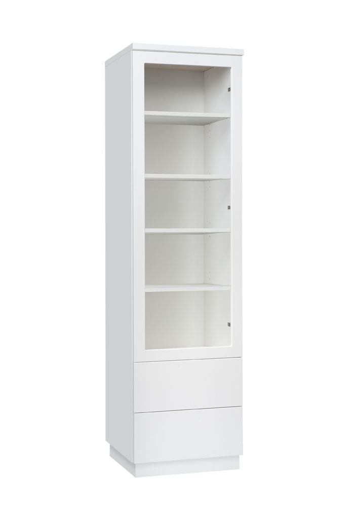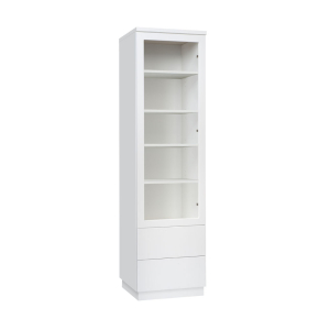 Vitriinin korkeussäädettävät valkoiset tai lasihyllyt tarjoavat joustavan tavan järjestää ja esitellä tavaroita. Lisävarusteena saatavat LED-valot tuovat esille yksityiskohdat ja luovat lämpimän tunnelman. Tämä tekee Anton vitriinistä täydellisen valinnan sekä tyylikkääseen säilytykseen että näyttävään esillepanoon.
