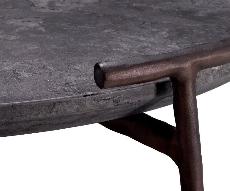 Arca-sohvapöytä yhdistää näyttävästi harmaan marmorikuvioisen pöytätason ja tumman pronssin sävyisen alumiinirungon, tuoden olohuoneeseen ylellisen ja modernin tunnelman. Sen viimeistelty ulkonäkö tekee siitä todellisen katseenvangitsijan, joka nostaa koko sisustuksen ilmeen uudelle tasolle.