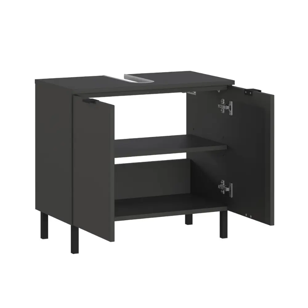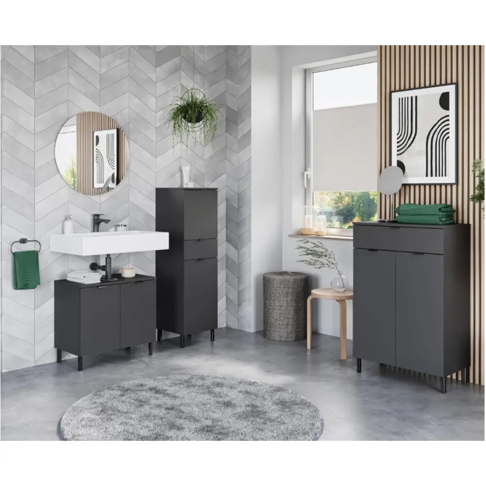 Arcena allaskaappi 1980 tuo kylpyhuoneeseen modernin ilmeen yhdistämällä tyylikkään grafiitin ja raikkaan valkoisen harmoniseksi kokonaisuudeksi. Sen minimalistinen ulkonäkö sopii täydellisesti niin moderneihin kuin skandinaavisiin kylpyhuoneisiin, tuoden tilaan selkeyttä ja ryhtiä.