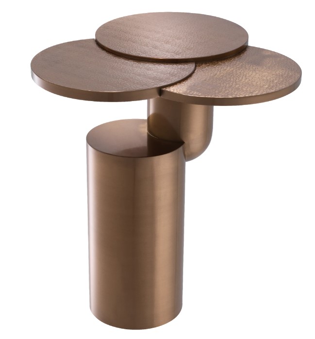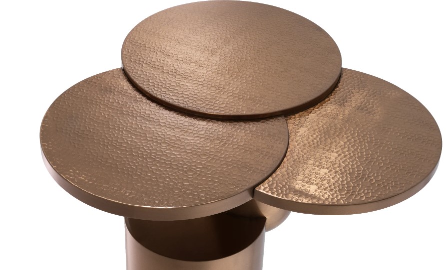 Armstrong-sivupöytä hurmaa ainutlaatuisella harjatulla kupariviimeistelyllään ja kolmitasoisella pyöreällä rakenteellaan, joka tuo olohuoneeseen modernia ylellisyyttä. Sen näyttävä muotoilu toimii yhtä hyvin sisustuksen kohokohtana kuin käytännöllisenä lisänä arkeen.