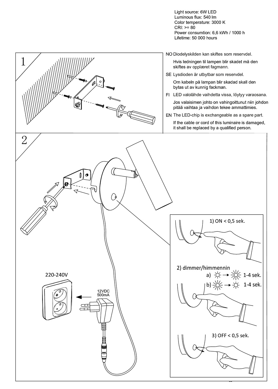16 cm10 cm14 cm cm cm cm cm cm cm cm cm cm cm cm cm cm cm cm cm cm cm cm cm cm cm cm cm cmKokonaisteho: 6W, Lampputyyppi: LED, Virtajohdon pituus: 250 cmKirkkaus: 540 lumen, Värilämpötila: 3000K cmTilaustuote0.55 kg cm cm cmMetalliIP20, Hinnettävä kytkimellä, 3000K, polttimot sisältyvät hintaan, SeinäkiinnitysMessinki, Musta, Valkoinen