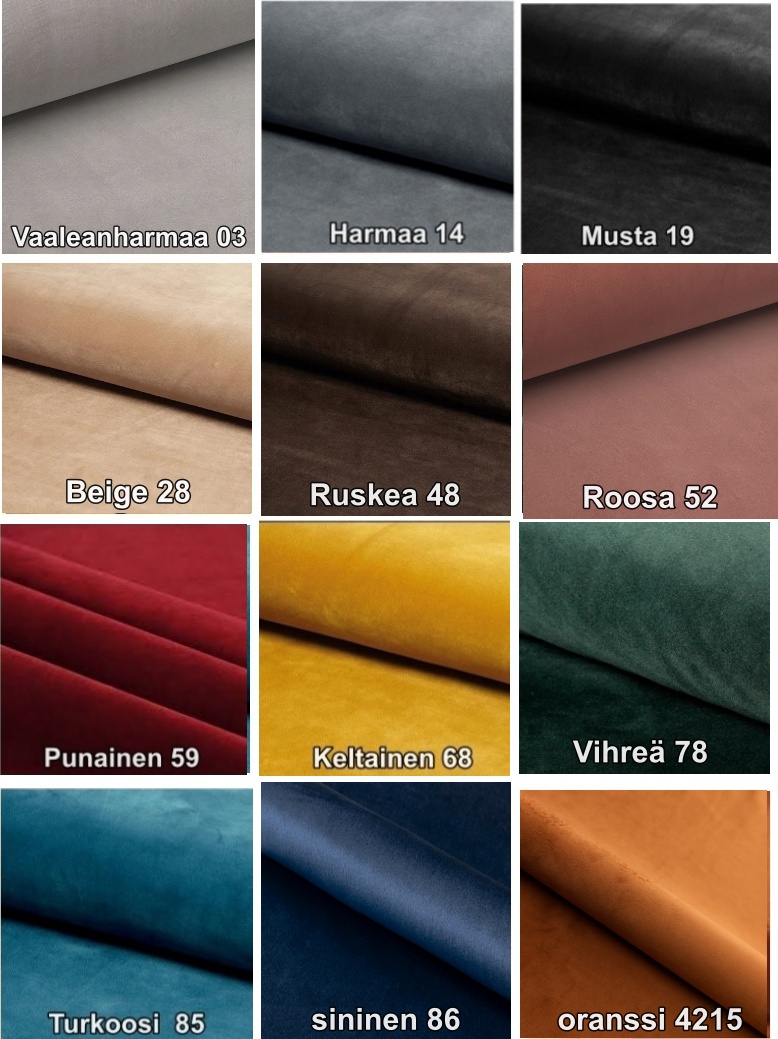| 61 cm | 44 cm | 86 cm | cm | cm | cm | cm | 50 cm | cm | cm | cm | cm | cm | cm | cm | cm | cm | cm | cm | cm | cm | cm | cm | cm | cm | cm | cm | cm | Jalat metallia, Samettikangas verhoilu | Beige, Harmaa, Musta, Sininen, Vihreä | cm | Tilaustuote | Toimitus koottuna - jalkojen kiinnitys | 12 kg | Kaukoitä | cm | cm | cm |