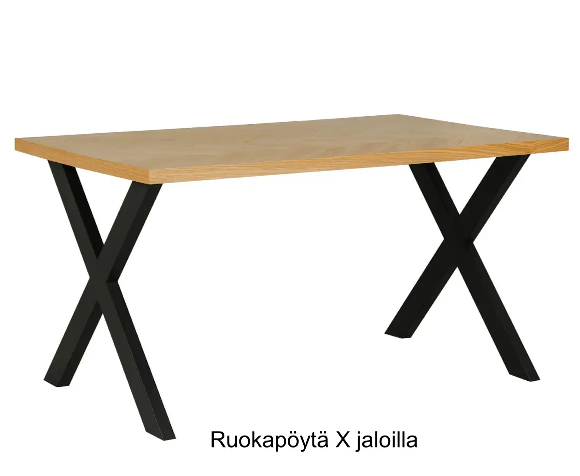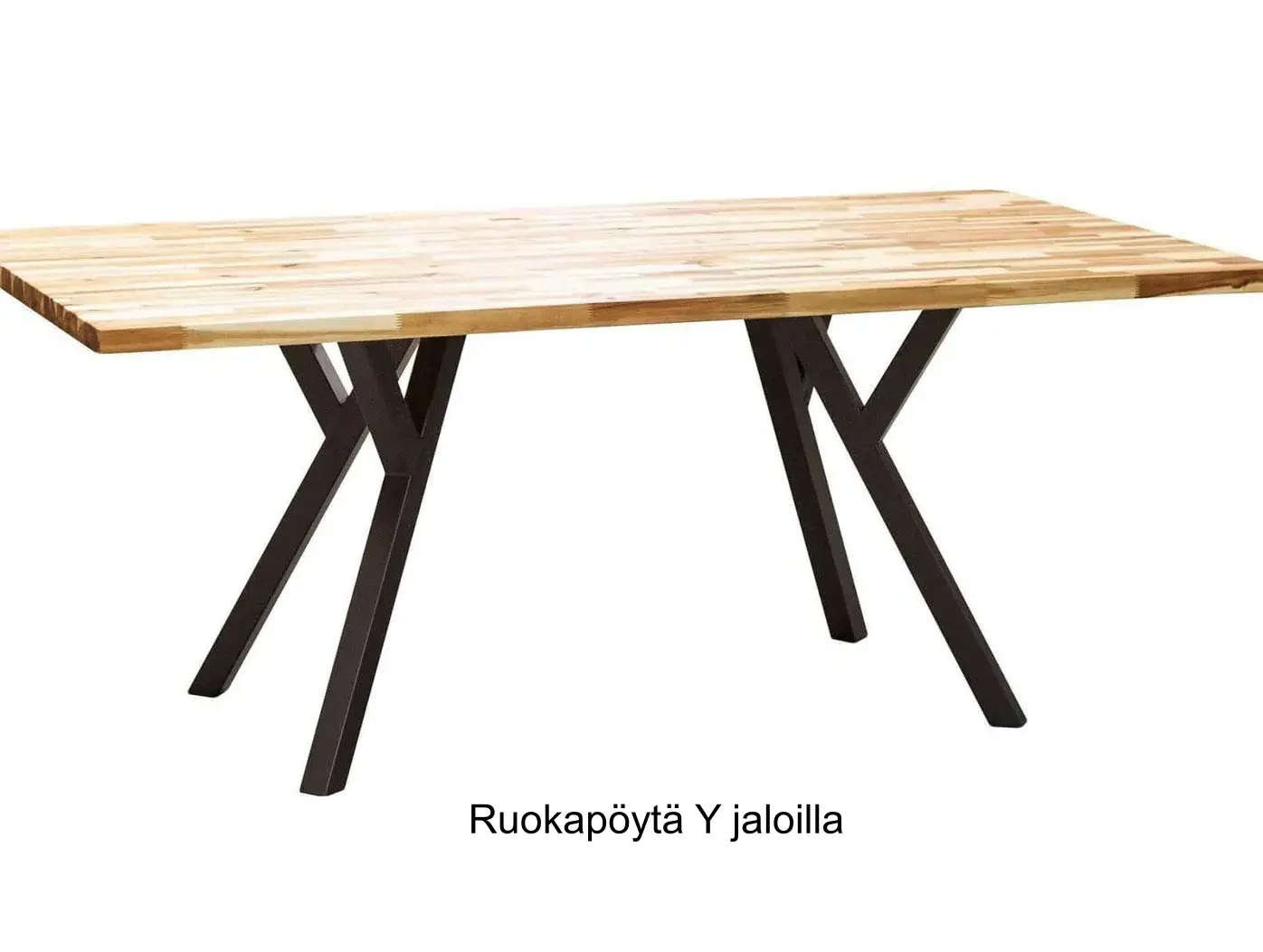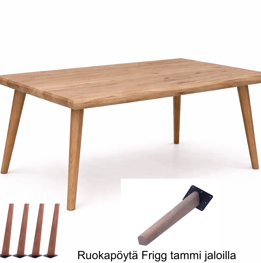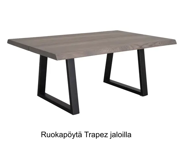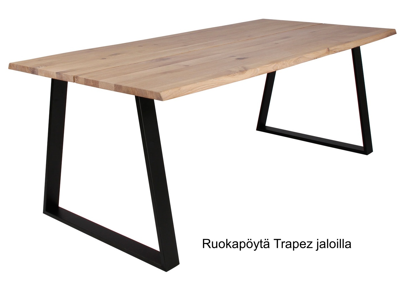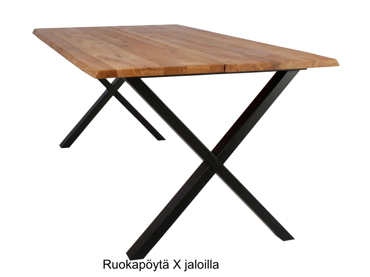 Asta ruokapöytä B4 mustilla jaloilla on tyylikäs ja laadukas valinta, joka tuo ruokailutilaan modernia ilmettä ja massiivipuun arvokkuutta. Mustat B4-jalat luovat vahvan kontrastin tammikannelle ja tekevät pöydästä näyttävän katseenvangitsijan niin arkeen kuin juhlaan. Voit lisähinnasta valita pöydälle toiset jalat joko metallisena oman sisustustyylin mukaan tai puisena. Voit myös valita ruokailupöydän reunaksi toisen vaihtoehdon jos et pidä tästä lankkupöydän reunasta ja pöytää on saatavana myös jatkettuna.