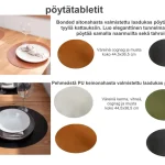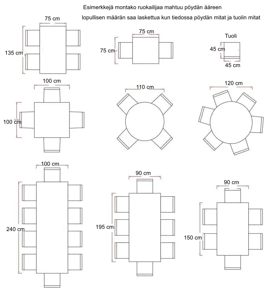 | Leveys | Syvyys | Korkeus | Halkaisija | kannen paksuus | Ruokapöydän koko avattuna 1 jatkolla | Ruokapöydän koko avattuna 2 jatkolla | Nojatuolin mitat | 2 ist sohvan mitat | 3 ist sohvan mitat | Istuinkorkeus | Työtuolin istuinkorkeus | Istuinleveys | Istuinsyvyys | Jalkojen malli | Jalkojen korkeus | Sokkelin korkeus | Selkänojan Leveys | Selkänojan korkeus | Niskatuen korkeus | Käsinojan korkeus lattaiasta | Käsinojan korkeus lattiasta | Käsinojan leveys | Käsinoja mallit | Istuintyyny | Selkätyyny | Muut pehmusteet | Divaanisohvan Jalkapäädyn korkeus | Divaanisohvan pääpäädyn korkeus | Jalkapäädyn korkeus | Pääpäädyn korkeus | Vuodesohvan syvyys avattuna | Vuodekoko | Istuinkorkeus patjan kanssa | Reunan korkeus | Sivulaidan korkeus | Patjapesän korkeus | Patjakoko | Päätyjen koot | Patjan korkeus | Patjan kovuus | Patjan koko jatkettuva | Vapaa tila sängyn alla | Sänkyjen materiaali | Patjojen materiaali | Sijauspatjan materiaali | Kangasverhoilu | Kaapin sisämitat | Laatikon sisämitat | Materiaali | Materiaalit | Mitta | Muut mitat | Muuta | lisätietoja | Väri | Jalkojen väri | Nahkavärit | Puuvärit | Vetimien väri | Vapaa tila tuotteen alla | Tekniset tiedot | Painoraja | Takuu | Saatavuus | Toimitus | Paino | Timantti värit | Jalat tai sokkeli | Kannen koko | Elementit | Ovien malli | Timantti osien materiaali | Hyllyjen materiaali | Vetimet | Valmistusmaa | Taljan mitat | Mattojen Materiaali | Tyynyjen ja torkkujen materiaali | mattojen mitat | Nukan pituus | Mattojen värit | Tyynyjen ja torkkujen värit | Rullamaton leveydet | Varjostimen korkeus: | Varjostimen leveys | Varjostimen syvyys | Valaisimen Materiaali | Valaisimen tiedot | Valaisimen värit | Varjostimen värit | Huomioitavaa | Työtuolien ominaisuudet | Työtuolien verhoilu |