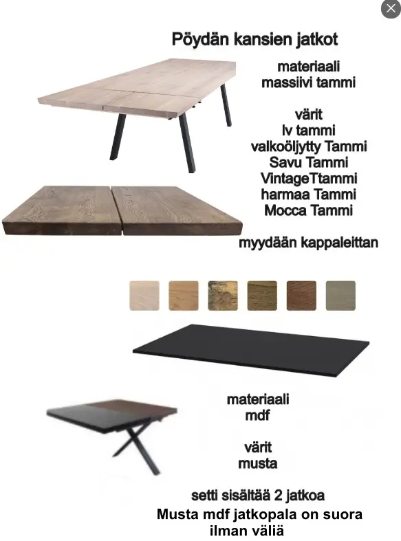 | 280 cm | 103 cm | 75 cm | cm | 4 cm | cm | cm | cm | cm | cm | 70.5 cm | cm | cm | cm | cm | cm | cm | cm | cm | cm | cm | cm | cm | cm | cm | cm | cm | cm | Jalat massiivipuuta, Jalat metallia, Massiivitammi | Musta, Puuvärit, Valkoinen | Antiikki Tammi, Harmaa tammi, Lv tammi, Mocca tammi, Savutammi, Tumma Savutammi, Valkotammi, Vintage tammi | cm | FSC - sertifoitua tammea | Tilaustuote | Toimitus osina | 50 kg | Tanska | cm | cm | cm | Saatavana erikoismittaisena kysy lisää asiakaspalvelusta. |