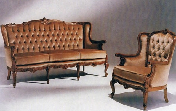 Johon kuuluu sohva ja 2 nojatuolia. Sohvan ja tuolien selkänojissa upea kruunuveistos ja napitukset. Verhoiltu laadukkaalla Amsterdam verhoilukankaalla joka heijastaa valoa siten että auringossa huonekalu näyttää tosi vaaleammalta ja varjossa tummemmalta. Halutessasi pelkän sohvan tai nojatuolin – ota silloin yhteyttä asiakaspalveluumme. Toimitus koottuna.