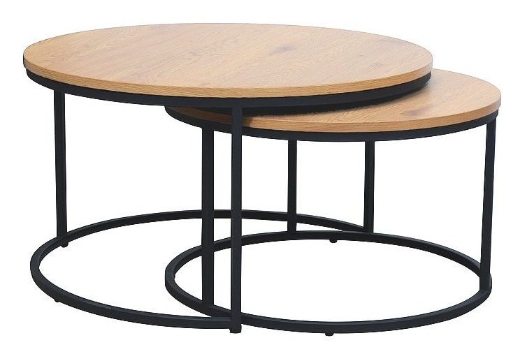 Vankka metallirunko ja laminaattilevy varmistavat pöytien pitkäikäisyyden ja helpon huollon, ja 21 kg paino lisää kokonaisuuden vakautta. Optimaaliset mitat – isompi (Ø 80 cm, K 45 cm) ja pienempi (Ø 60 cm, K 40 cm) – tekevät sarjasta toimivan niin suuriin kuin kompakteihin tiloihin.