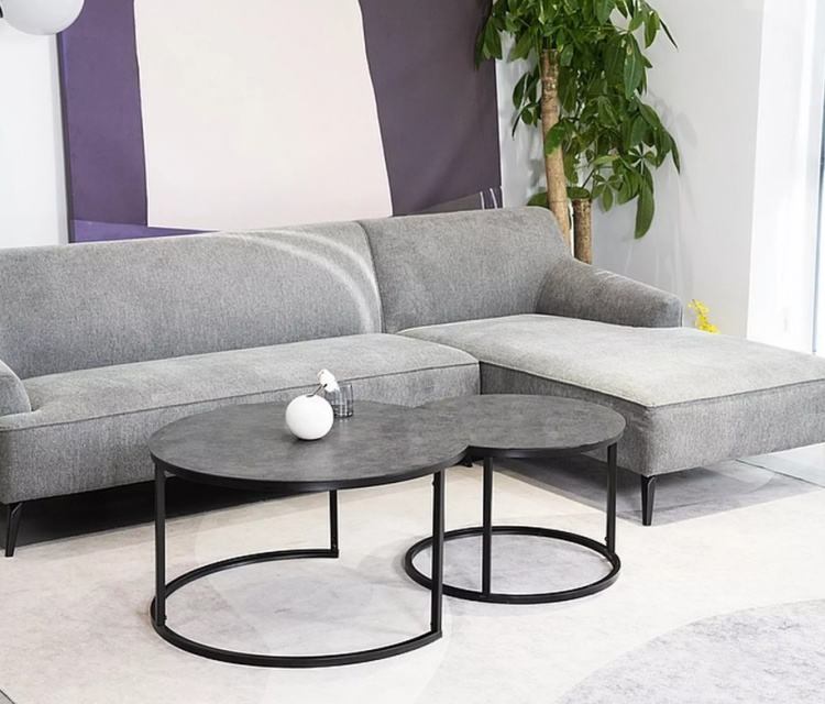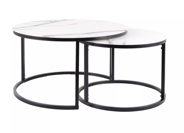 Atlanta-sohvapöytä tuo olohuoneeseen joustavuutta ja tyyliä kolmella erilaisella kansivaihtoehdolla – harmaa kiviefekti, valkoinen marmorikuvio ja musta – jotka korostavat elegantisti mattamustaa metallirunkoa. Pyöreä muotoilu antaa kokonaisuudelle modernin ja ajattoman ilmeen.