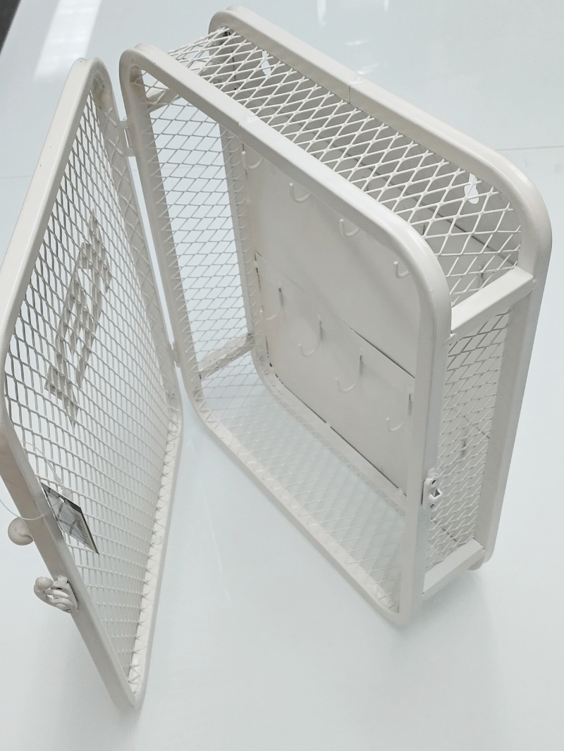 Valkoinen Key verkko -avainkaappi yhdistää modernin muotoilun ja kestävän metallirakenteen tyylikkääksi kokonaisuudeksi. Raikas valkoinen sävy ja verkkomainen rakenne tuovat keveyttä ilmeeseen ja sopivat erinomaisesti niin kotiin kuin toimistoon.