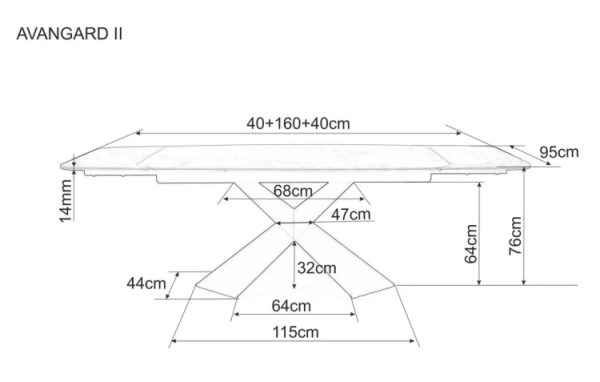 - Avangard II on näyttävä jatkettava ruokapöytä, jonka tyylikkäästi muotoiltu musta tukeva jalka toimii varmana katseenvangitsijana. Pöydän kannessa kaunis musta marmorikuviotu pinta, jossa eri sävyisiä juonteita. Pöytä soveltuu erinomaisesti moderniin sisustukseen tuomaan ilmettä. Tarvittaessa pöytää saa jatkettua kätevästi yhteensä 80 cm lisää. Toimitus osissa.